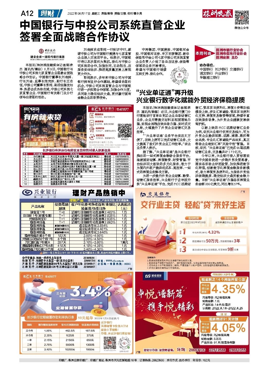 中国银行与中投公司系统直管企业 签署全面战略合作协议