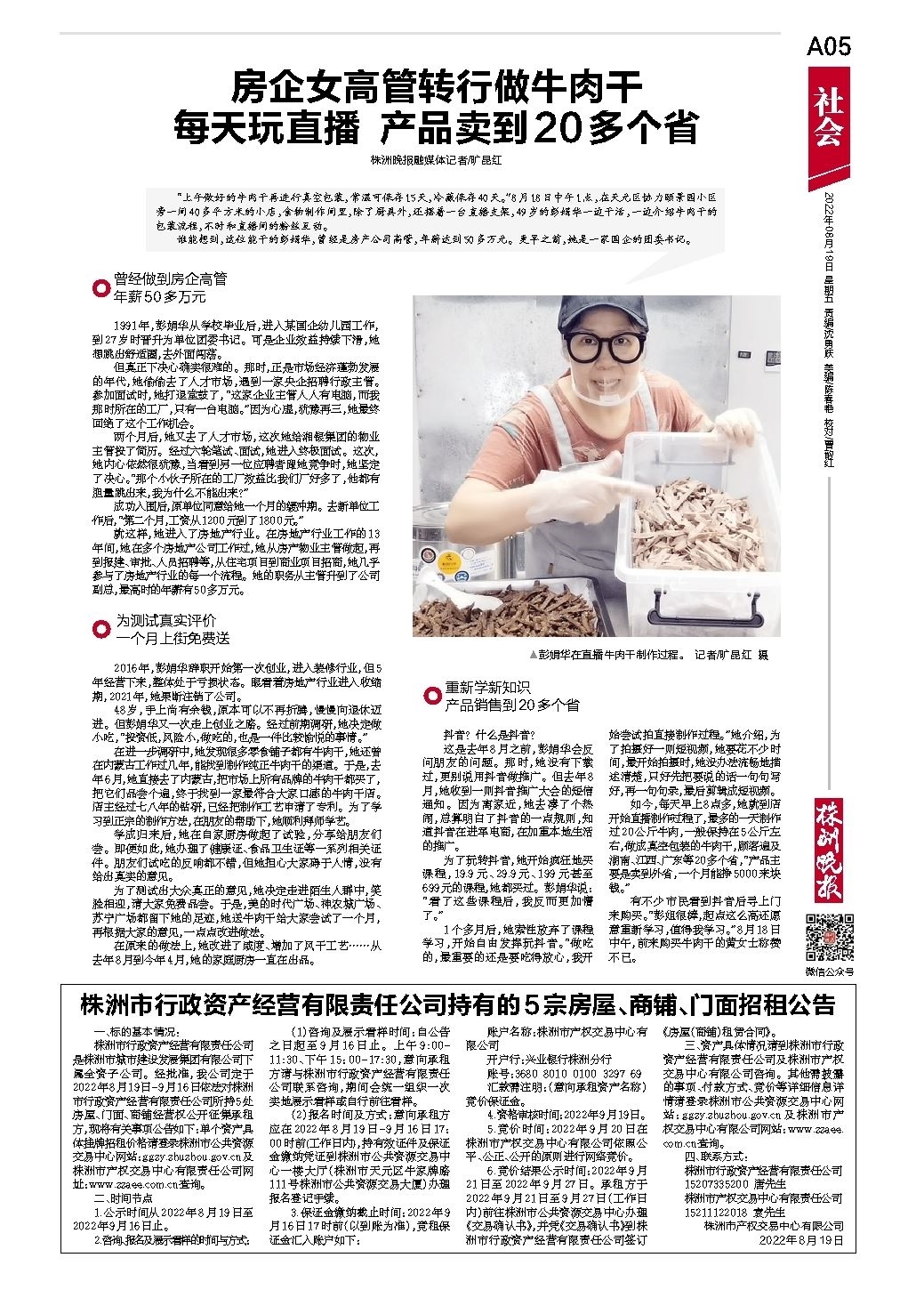 房企女高管转行做牛肉干每天玩直播 产品卖到20多个省