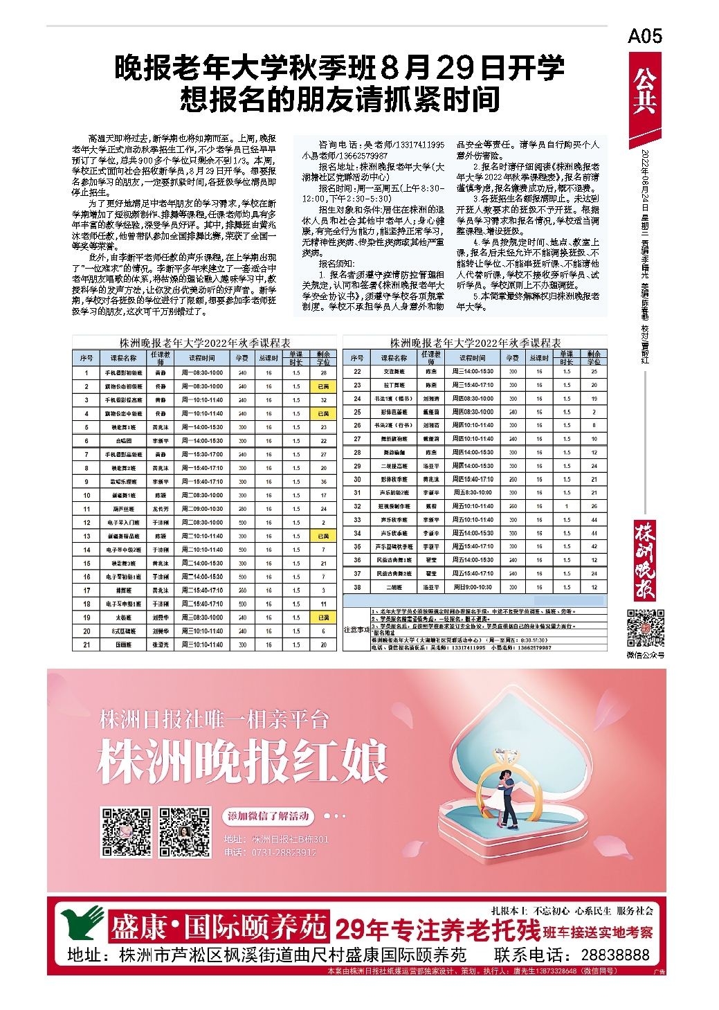 晚报老年大学秋季班8月29日开学 想报名的朋友请抓紧时间