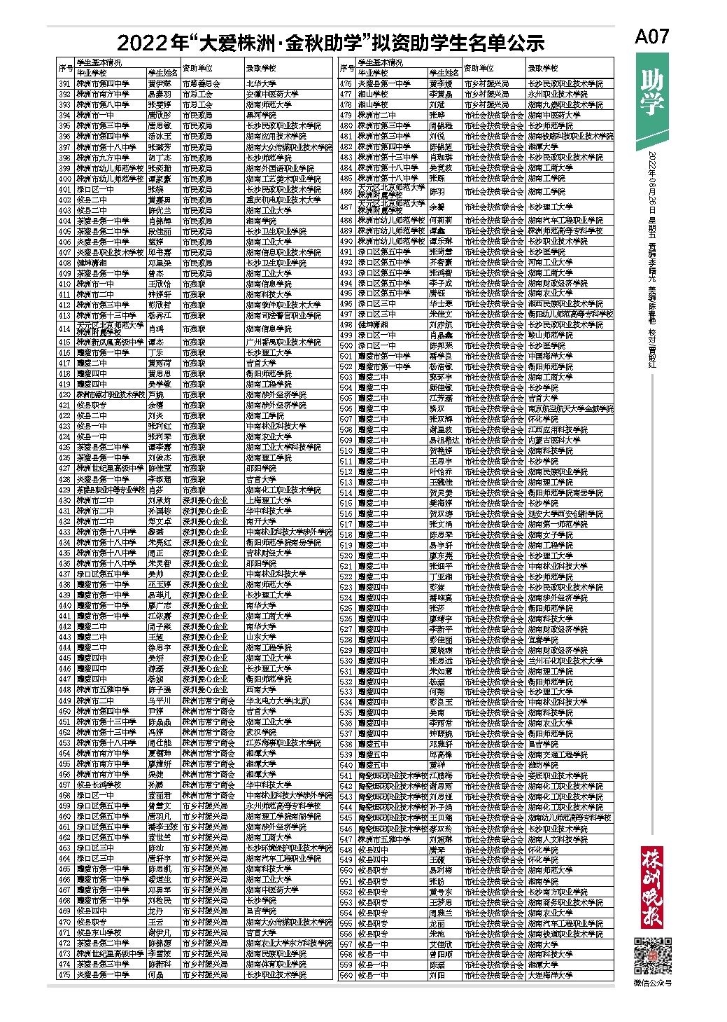 2022年“大爱株洲·金秋助学”拟资助学生名单公示