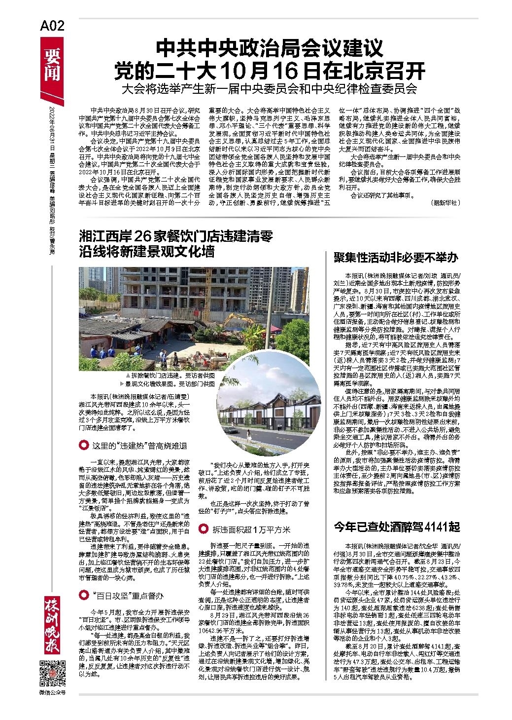 湘江西岸26家餐饮门店违建清零沿线将新建景观文化墙