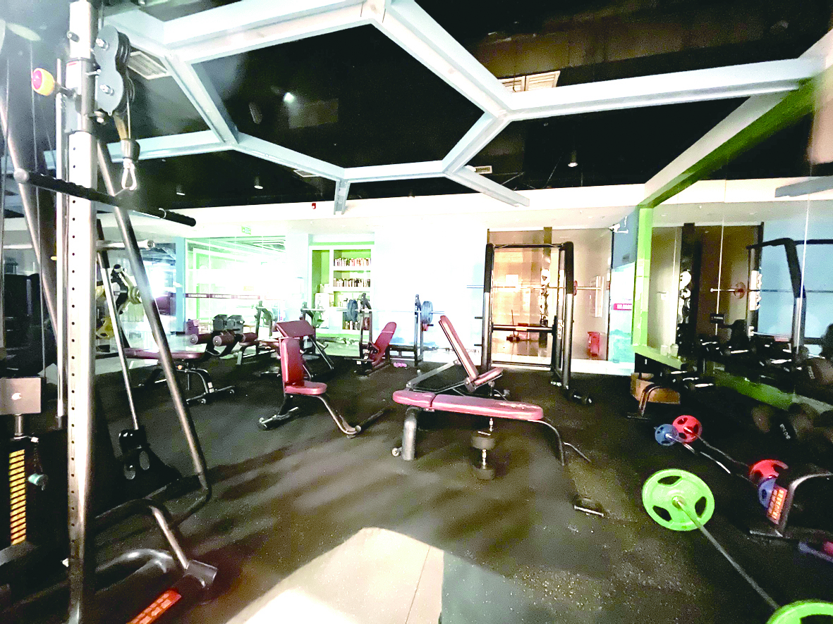 ▲健身房内有大量健身器材。 记者/刘平 摄