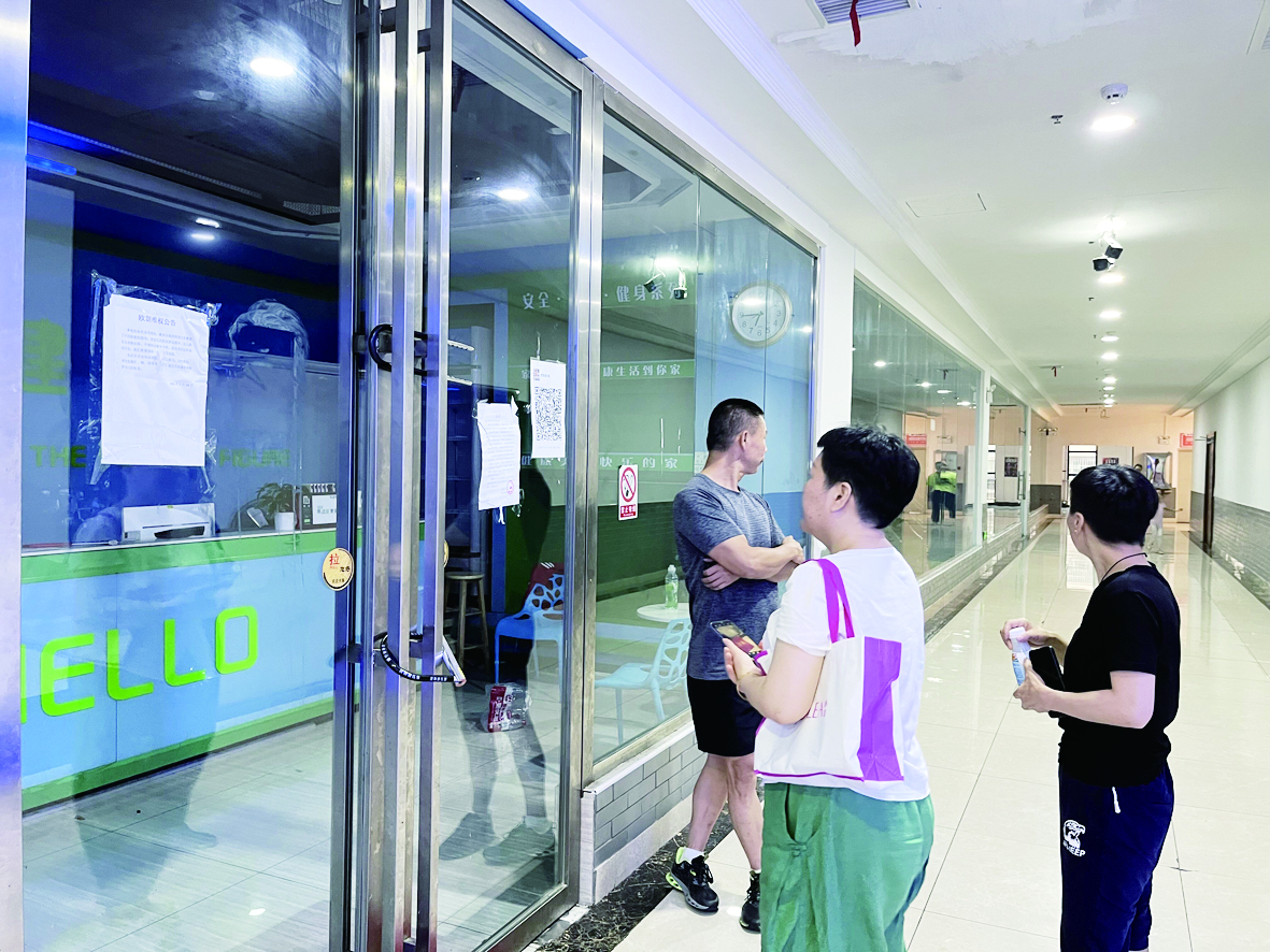 ▲几名会员在健身房“吃了闭门羹”。记者/刘平 摄