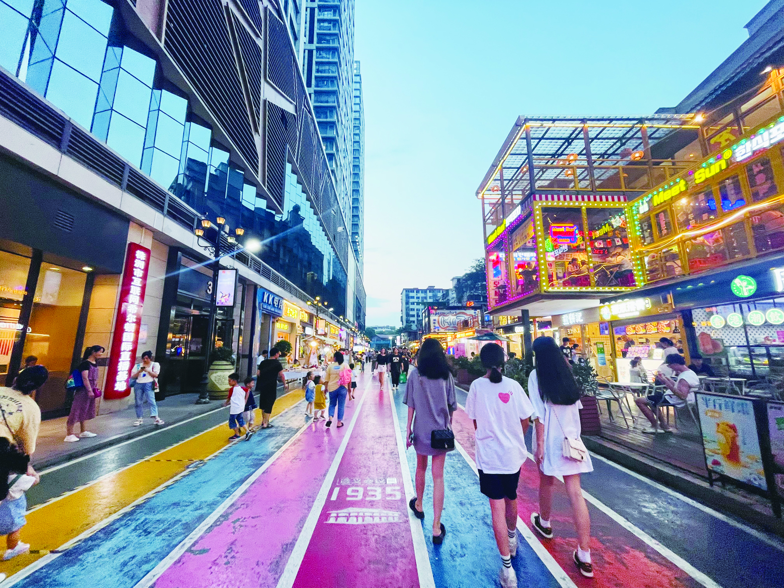 ▲大汉·悦中心JOJO街是年轻人夜间休闲娱乐的常去之地。伍靖雯/摄