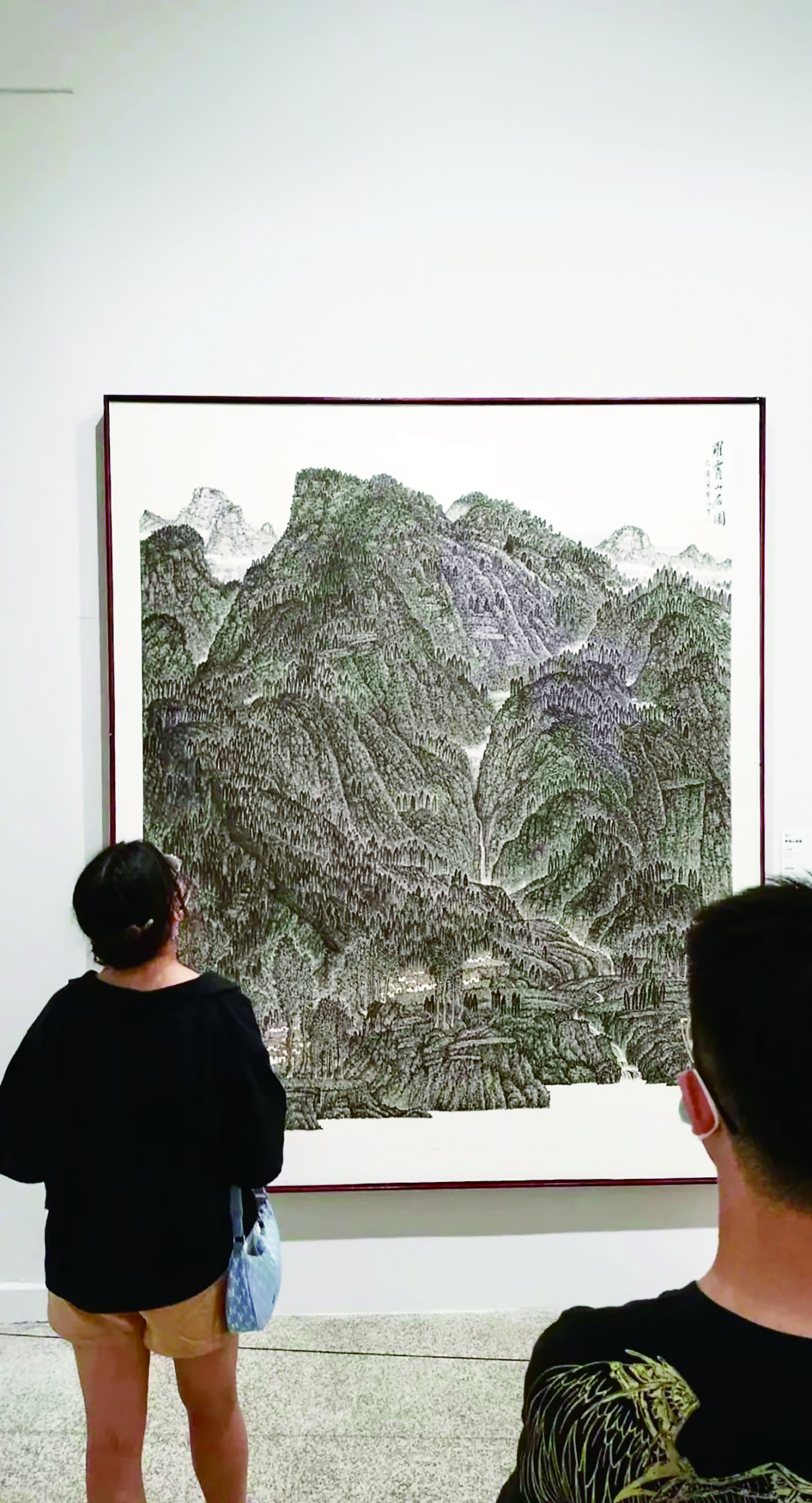 ▲游客欣赏《罗霄山居图》。株洲美术馆供图