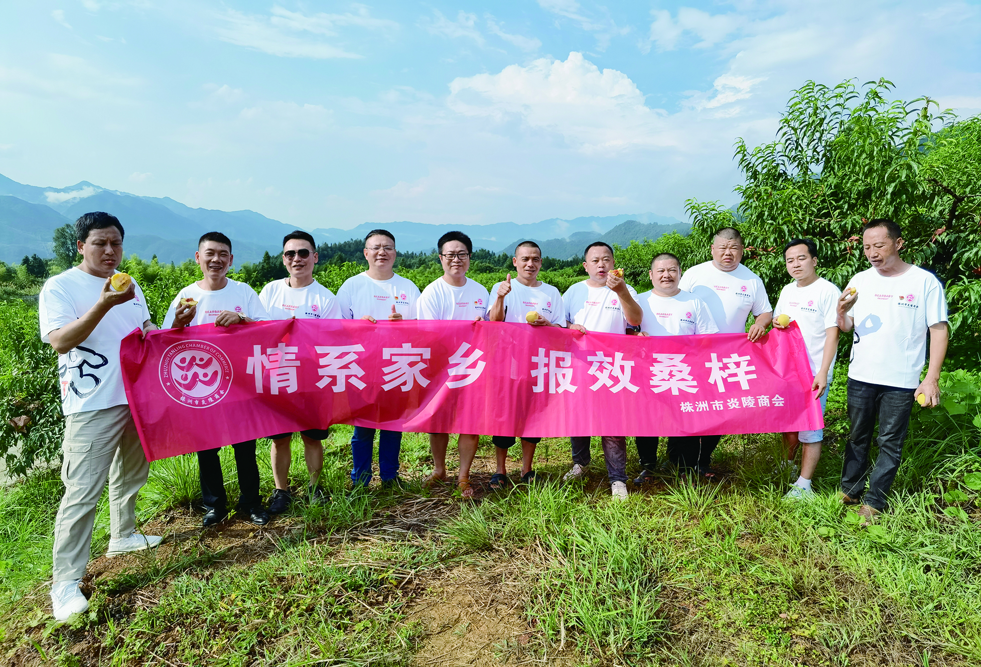 黄桃丰收之际,会员们走进田间果园品黄桃、摘黄桃、购黄桃,感受最为鲜活的丰收场景,共享一场黄桃盛宴。炎陵大塘农林科技有限公司生产基地桃香四溢,公司负责人黄总说:建设这个1500亩的黄桃基地,是响应省委、省政府“迎老乡、回故乡、建家乡”的号召,回乡创业,通过“合作社+基地+农户”的生产经营模式推行规范化种植,大幅度提高黄桃产量,助推炎陵黄桃产业的发展。商会会长阳建平表示,商会作为社会组织理应助力乡村振兴,让会员回馈家乡,为炎陵乡村振兴做点实事。近年来,有会员将总部迁回炎陵,让产业、资本等各要素回归家乡。会员谢建春回乡建起了加工企业,生产黄桃片、果脯、果汁等产品,延长了黄桃产业链,有效推动了黄桃产业向纵深发展。