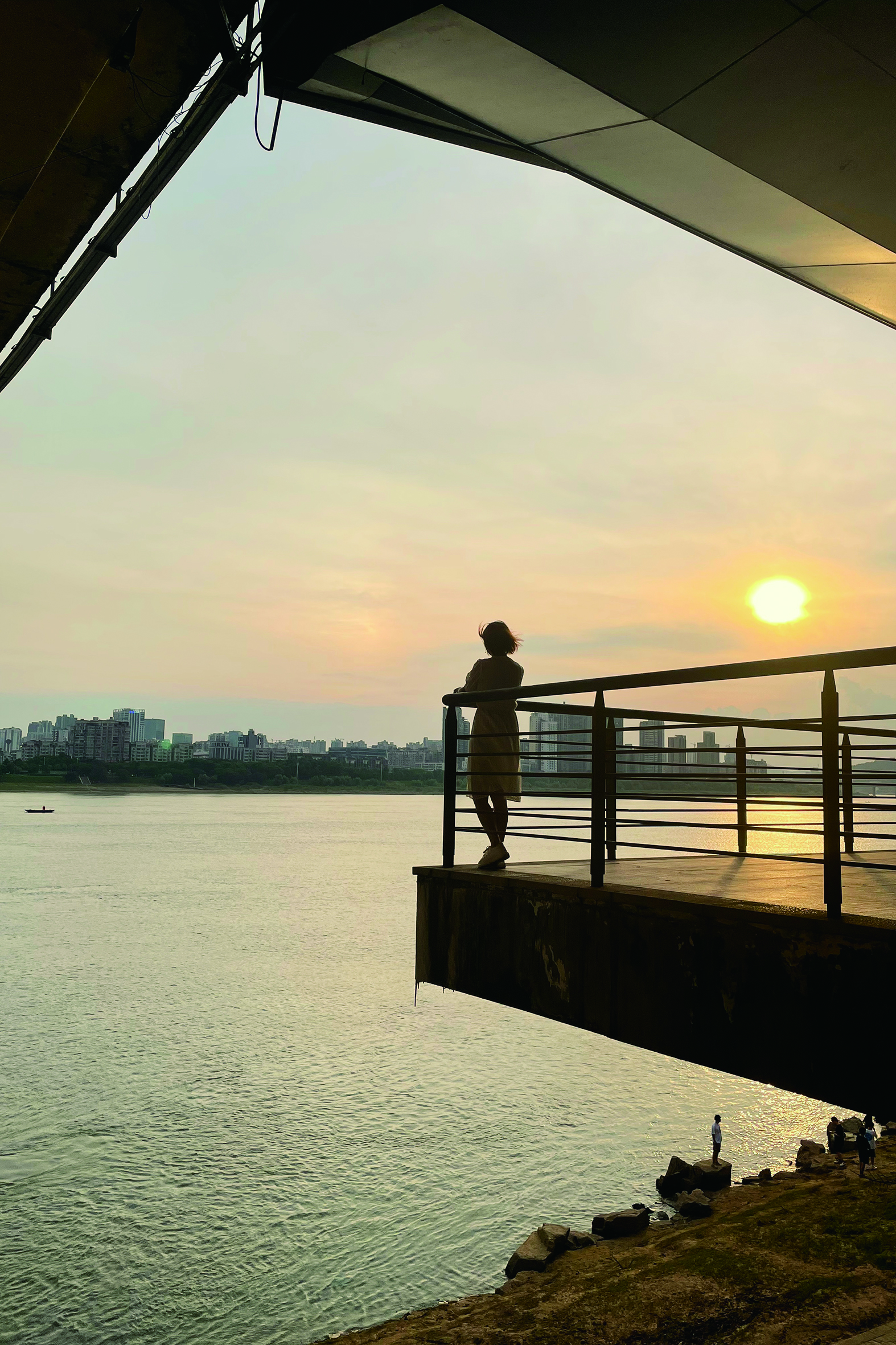 ▲在湘江边,一位市民陶醉在夕阳美景中。网友/曾巍 摄