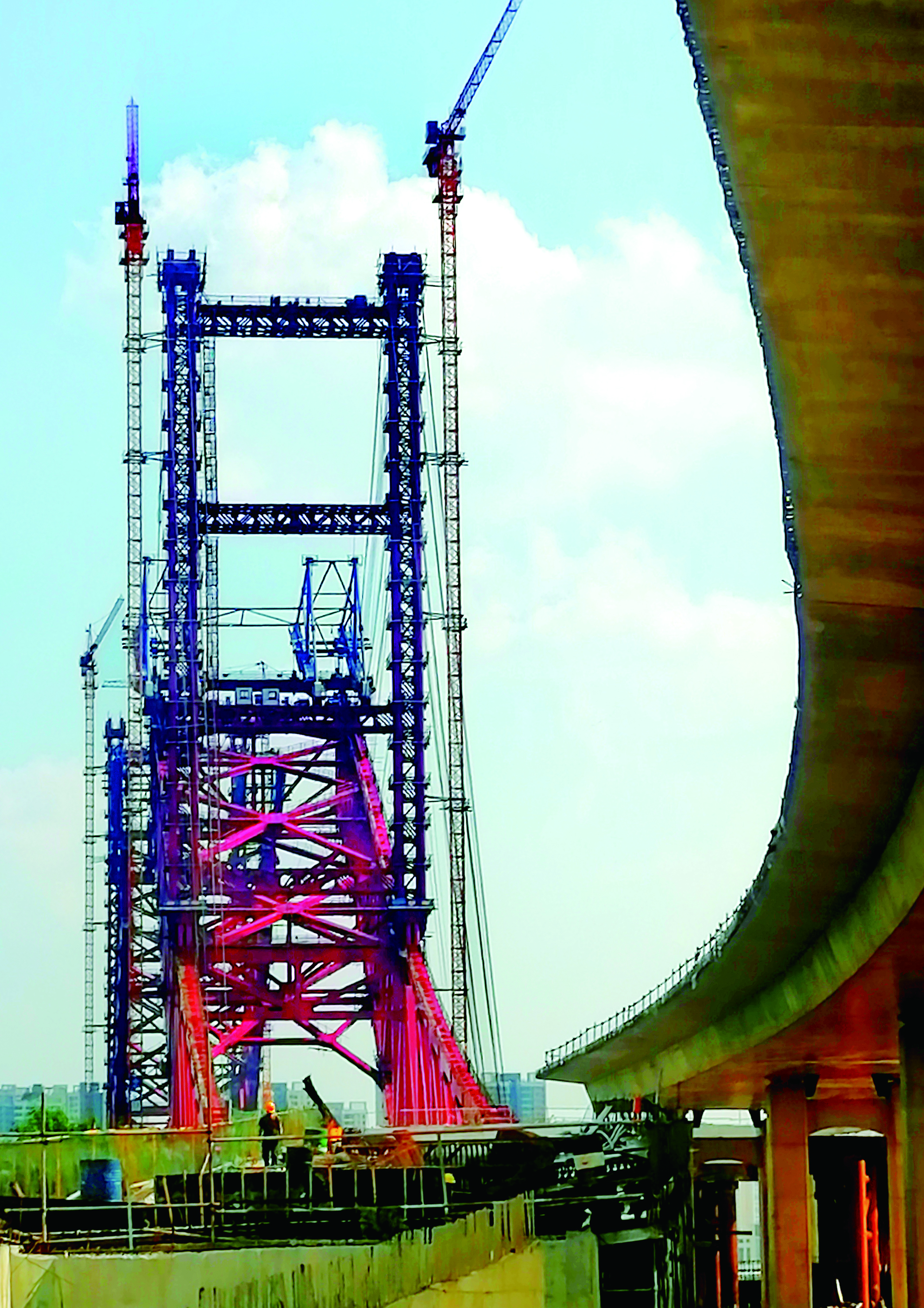 ▲烈日炎炎下的清水塘大桥,威武雄壮。网友/吴东沙 摄