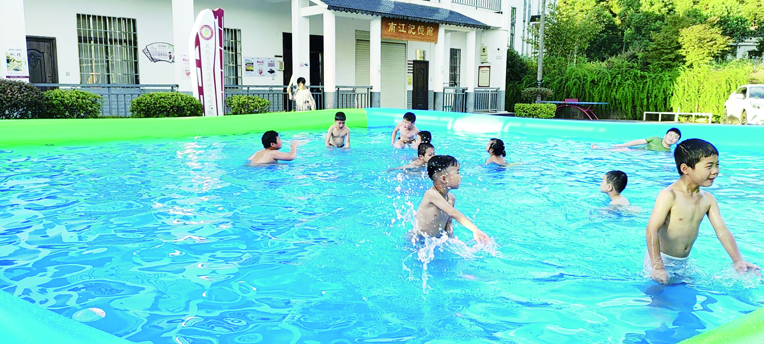 这个夏天风靡全网的“简易泳池”(在自家空地、猪栏屋或货车车厢等地搭建),咱们村也有了!近日,为防止村里儿童暑期野泳,天元区三门镇南江村建起了简易泳池,聘请专业老师授课,教孩子们如何游泳、防溺水,并组织志愿者对泳池卫生、秩序进行管理。