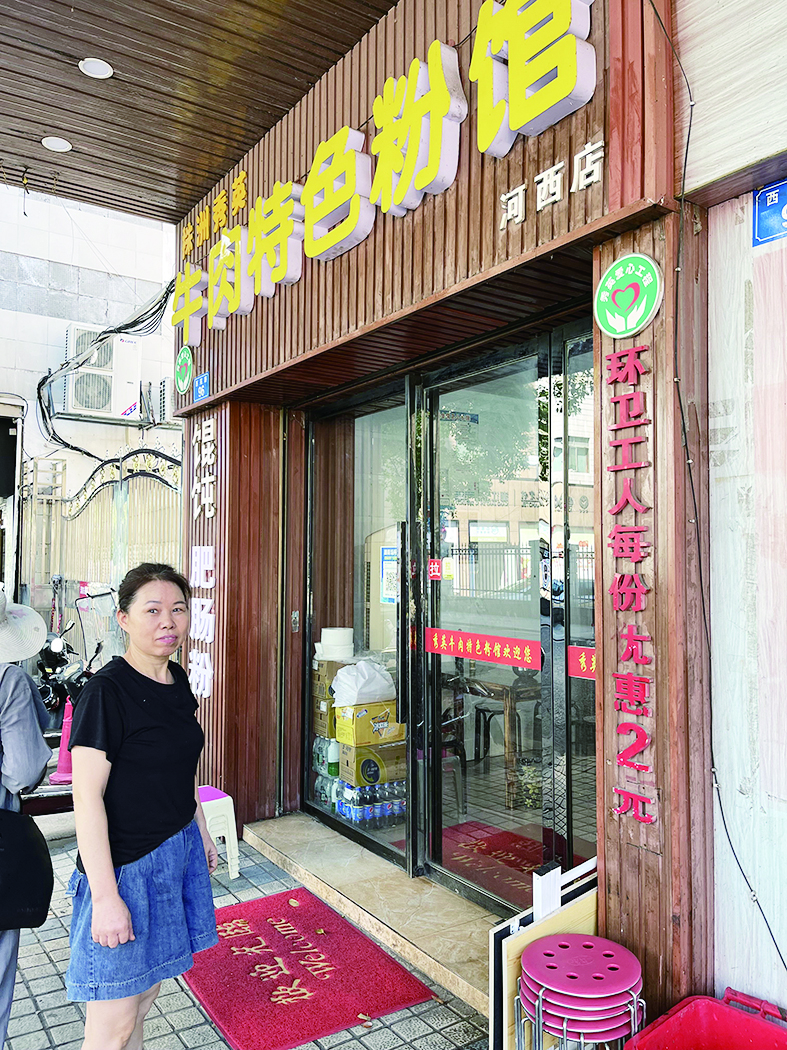 ◀胡孝英和她的米粉店。 记者/刘平 摄