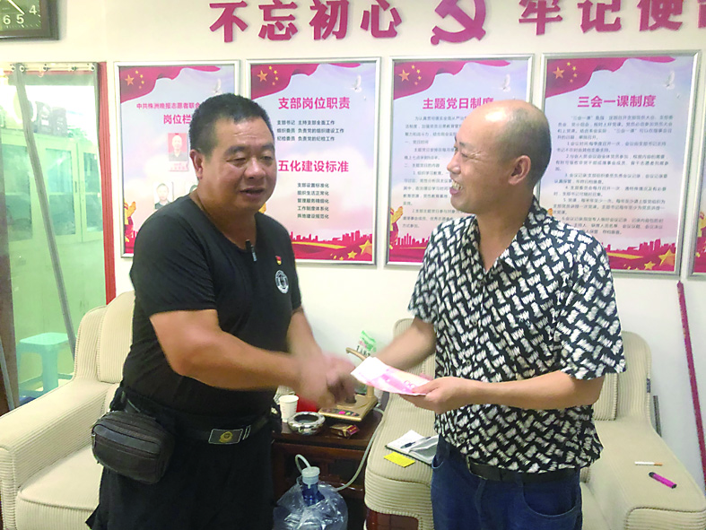 ◀宾先生捐款时,志愿者抢拍的照片。 通讯员/易跃平 摄