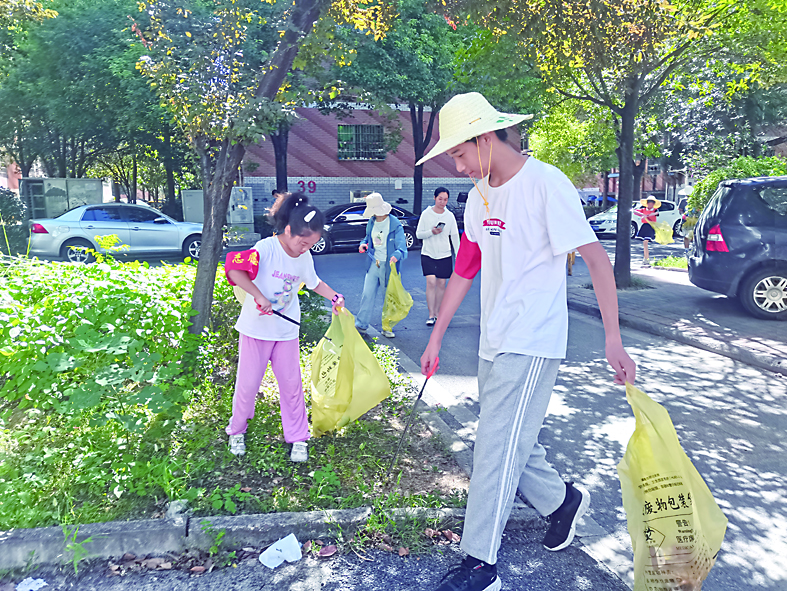 金雨萌是参加活动的孩子之一,妈妈张女士说,参与社区大清洁志愿活动既丰富了孩子的暑假生活,也培养了孩子的环保意识,活动很有意义。