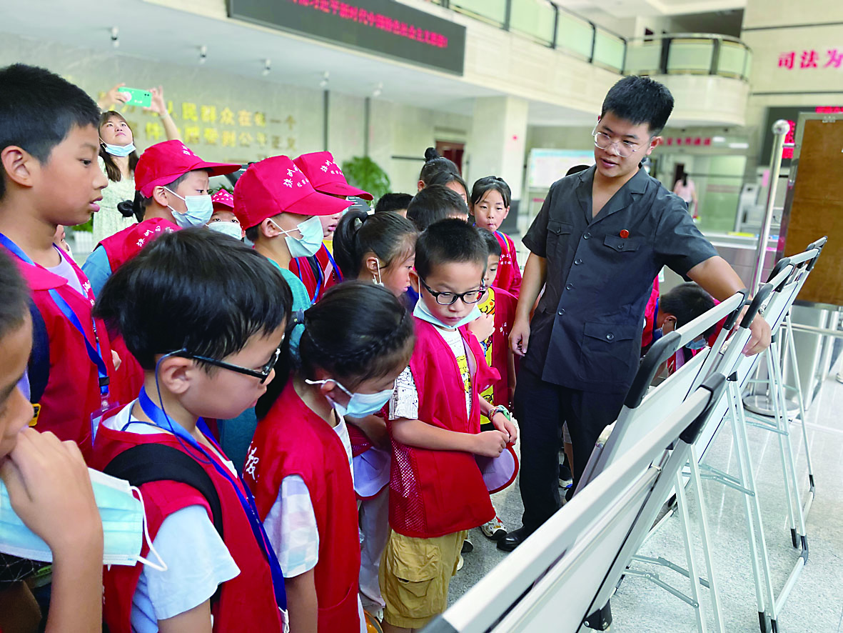 ◀暑假,校园记者走进法院零距离了解法院工作。 记者/彭慧洁 摄