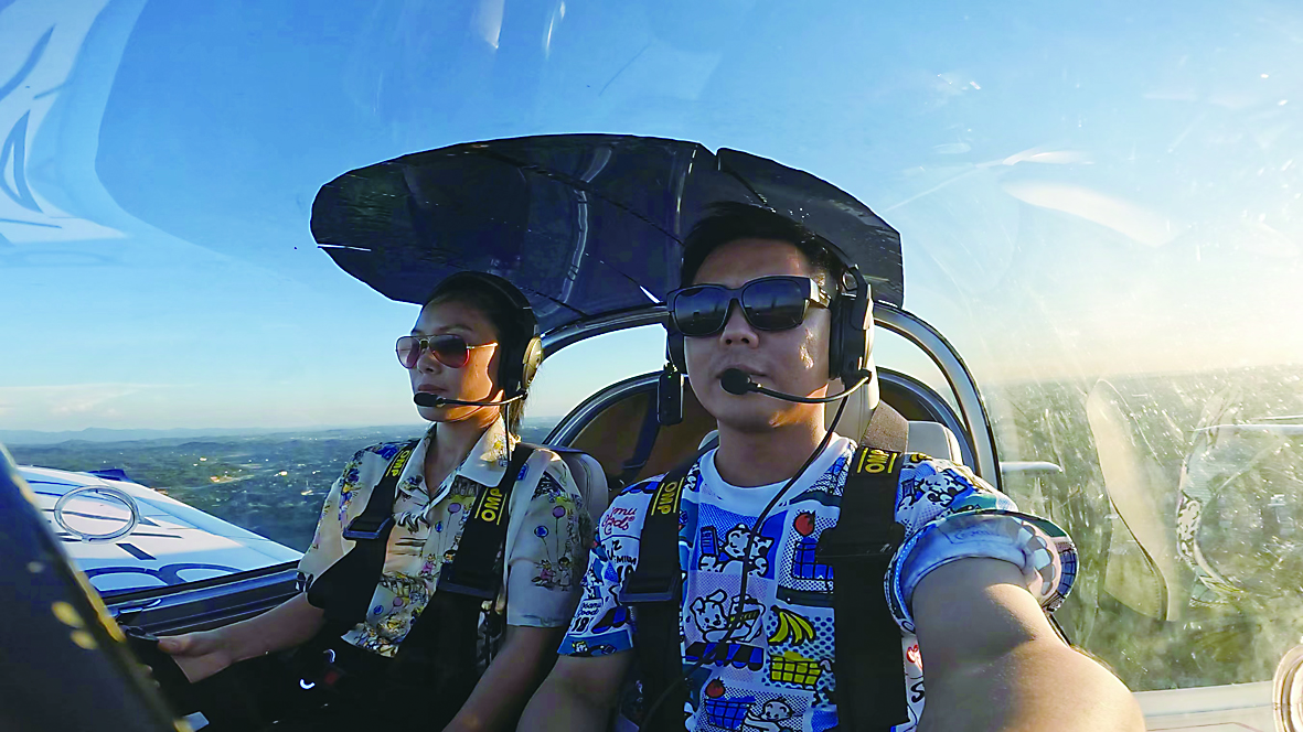 ▲吴维(右)驾驶飞机飞翔在空中。 通讯员供图