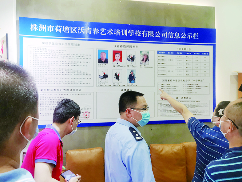 7月19日,茶陵县教育局、市场监督管理局、文旅广体局联合开展了校外培训机构检查执法行动,对违法违规校外培训机构进行了查处。同日,渌口区教育局也开展了联合检查执法行动,共下达2份停办通知书、1份整改通知书。