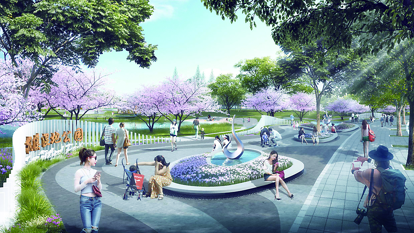 根据设计,公园里的水池将铺设砂石,种植水生植物,营造鱼类、虾类、水生植物、浮游生物稳定共存的水生态系统,构建湿地恢复和保护等多种生态的良性循环。“它们每天能为公园净化上万吨水。”相关设计人员介绍,各种水生物将通过吸附、滞留、过滤、氧化还原、沉淀、微生物分解、转化、植物遮蔽等方式,有效净化水质。