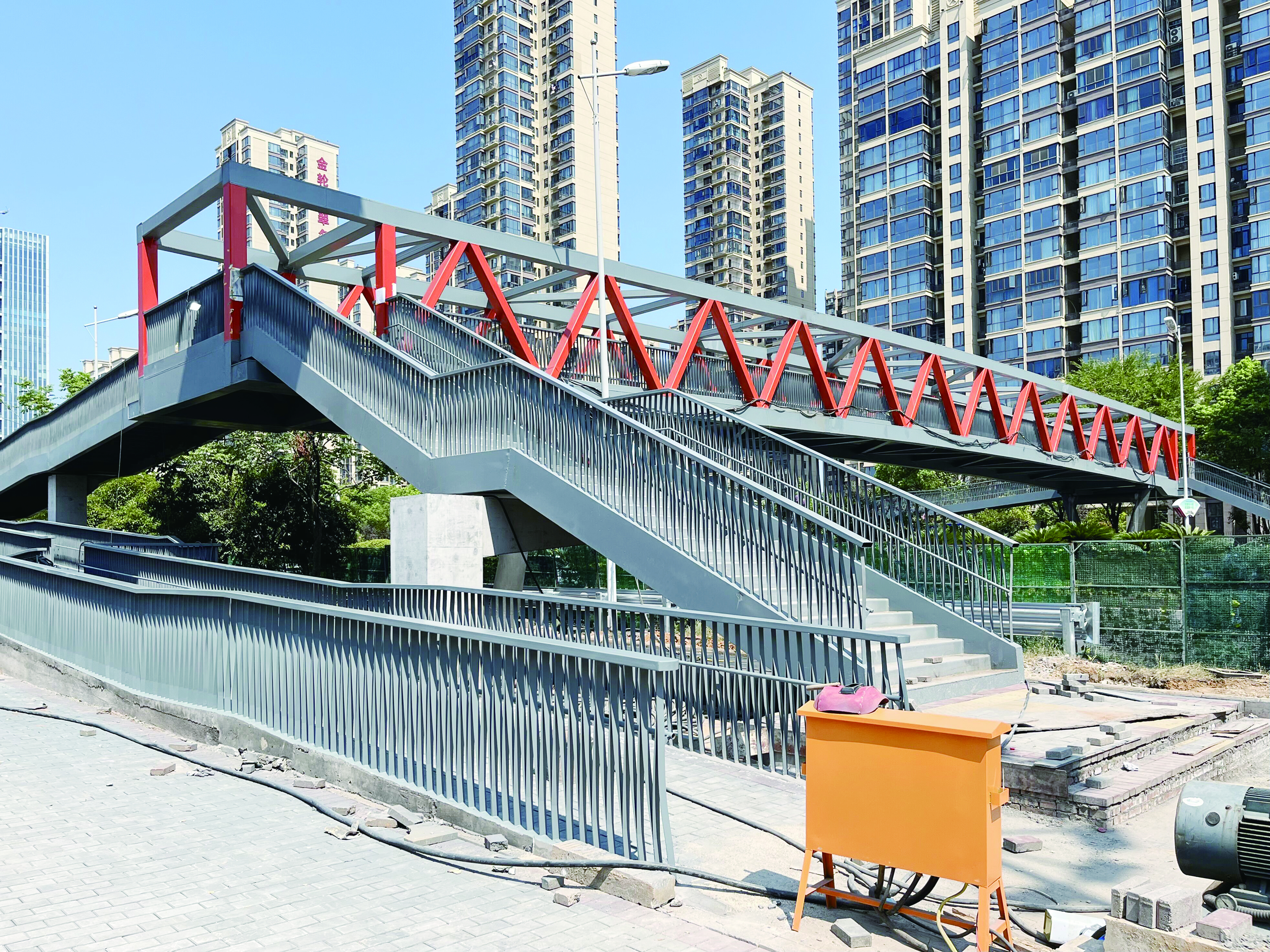 8月17日,记者在市二中附小人行天桥项目工地发现,连接人行天桥的无障碍坡道已完成建设,整座人行天桥预计在8月28日投入使用。