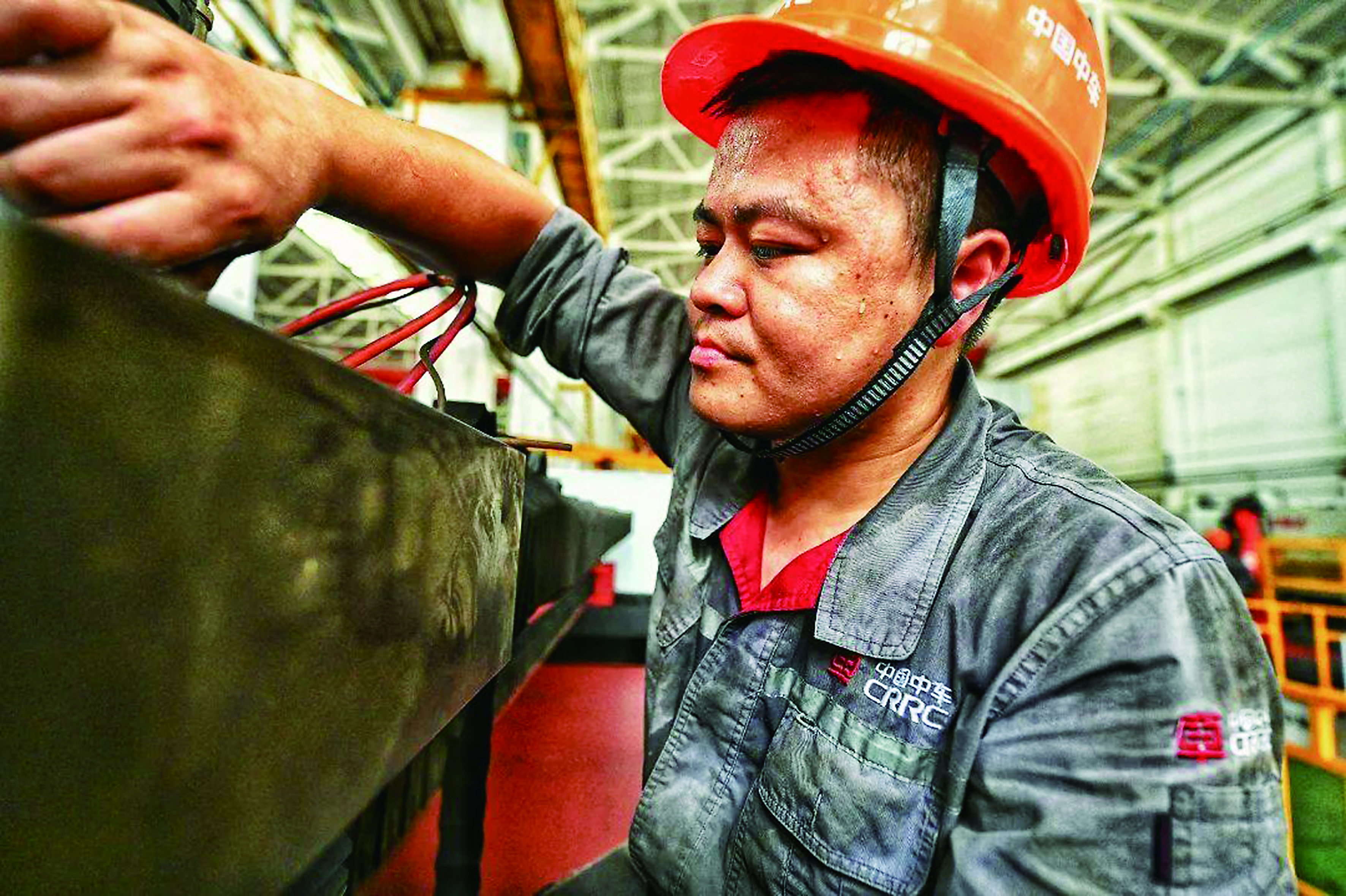 ▲连日来,酷暑肆虐,高温红色预警不断响起。从工地到车间,烈日下、火炉旁,40万株洲产业工人战高温、保生产,奋战在生产一线。图为中车株洲车辆有限公司装备维保中心车间里,钳工陈端军汗如雨下。 株洲晚报融媒体记者/何春林 摄