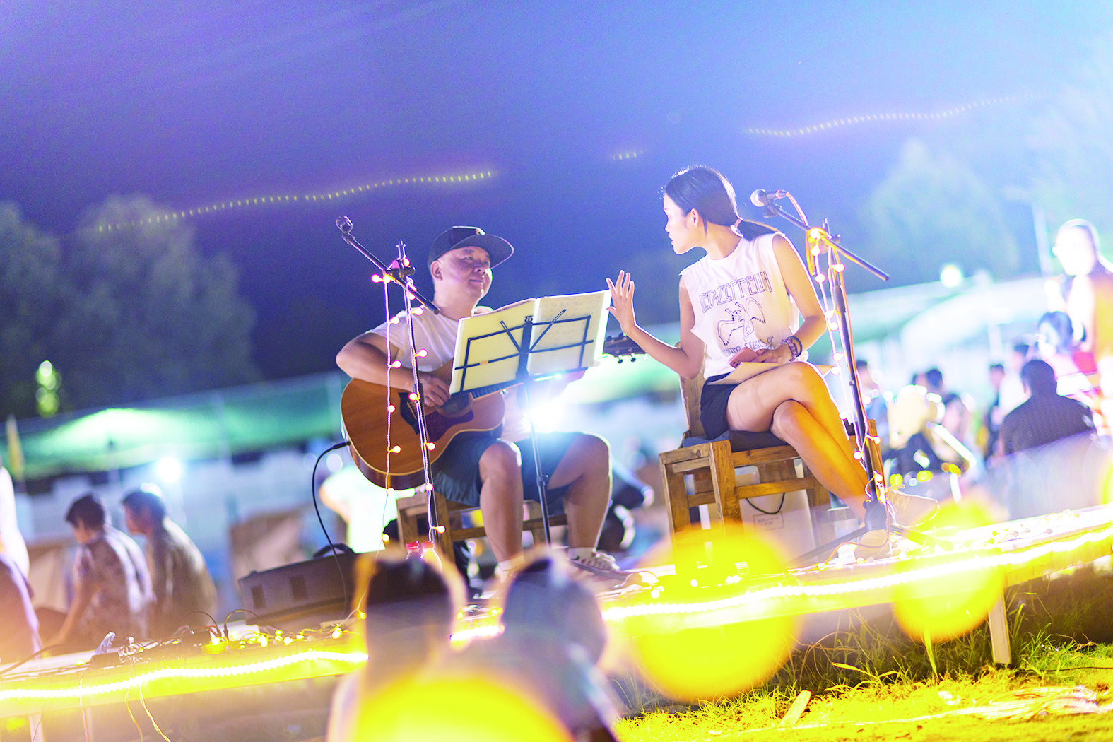夜幕越来越深,繁星闪闪,天幕边的串串灯珠把气氛烘托得特别柔美。不知什么时候,草坪中央响起了民谣,此情此景,让嘉宾们感慨:舒服、浪漫!