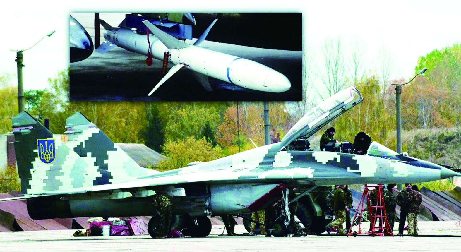 ▲大图为乌空军双座米格-29,小图为AGM-88高速反辐射导弹。