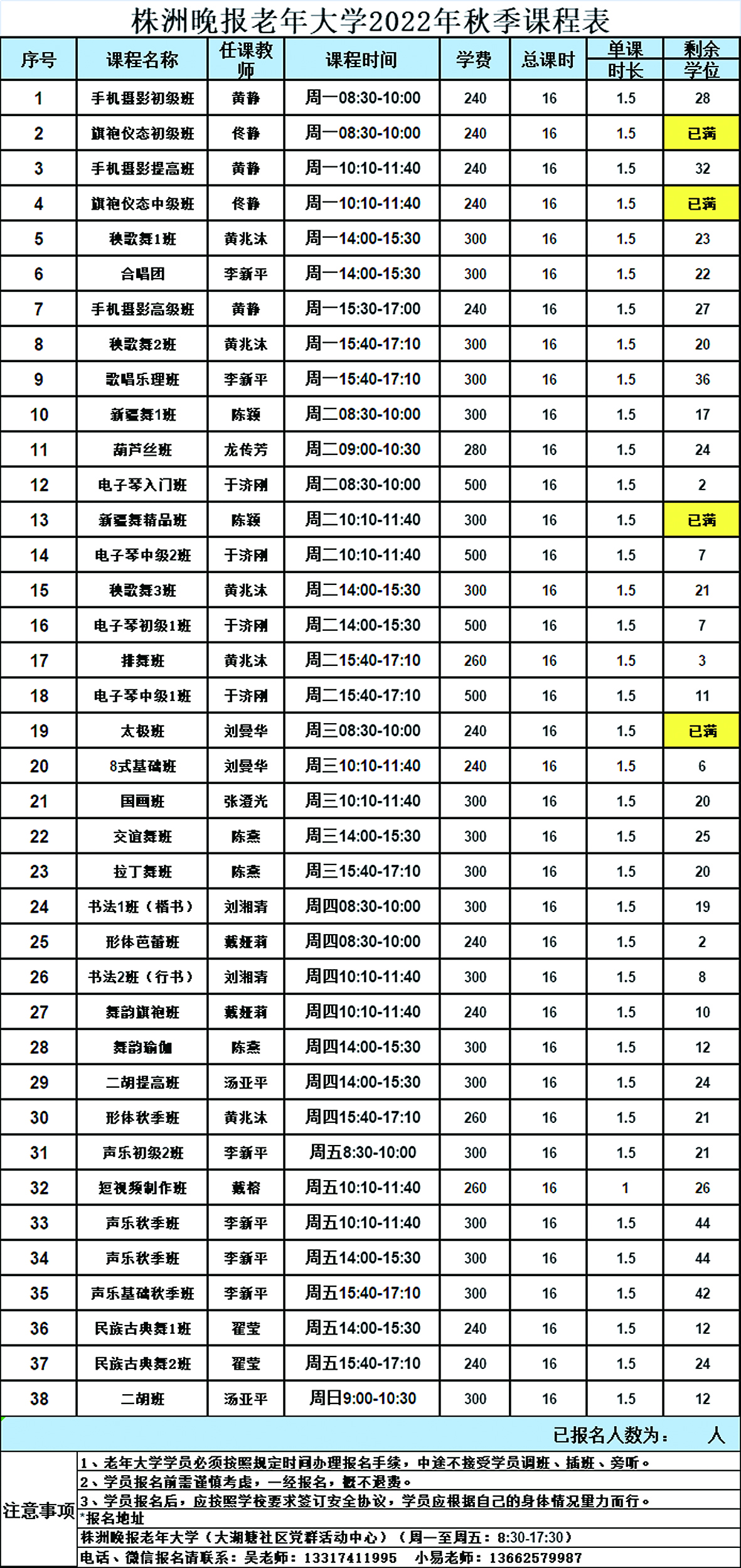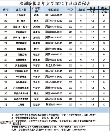 2.报名时请仔细阅读《株洲晚报老年大学2022年秋季课程表》,报名前请谨慎考虑,报名缴费成功后,概不退费。