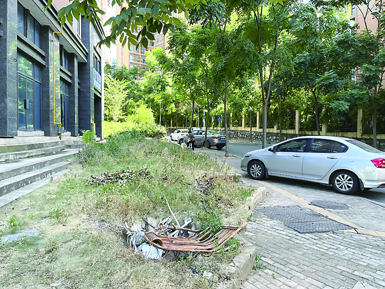 ▶泰黄支路沿线无停车位,居民建议对路边空地进行改造利用。 记者/刘平 摄