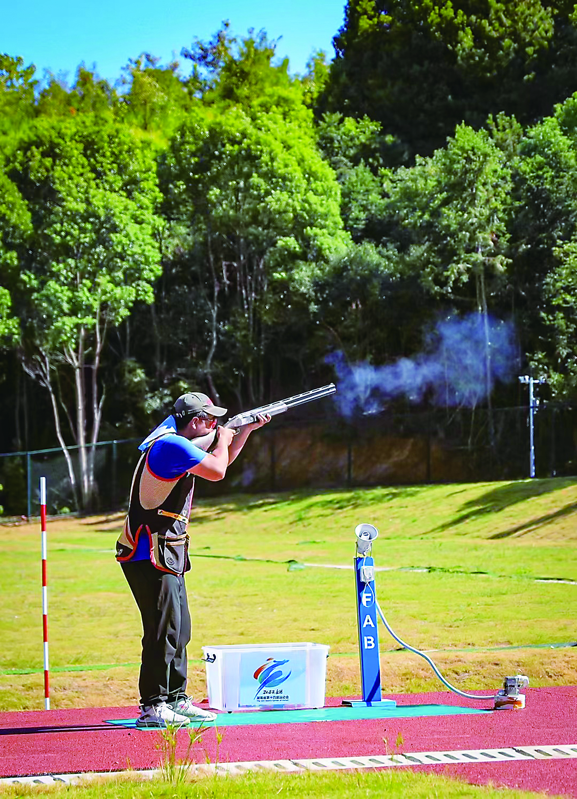 这是瞿含第一次参加省运会,以前参加省级赛事,不是季军就是亚军,离冠军总差一点点。踏进赛场后,瞿含心里一直憋着一股劲。在U18男子飞碟双向团体项目预赛上,他就拿出惊人的状态,带领省体校队一路领先。到了决赛,他更是以125发104中的惊人发挥,带领队伍以超过第二名60中的绝对优势,收获了自己在省级赛事的首枚金牌。