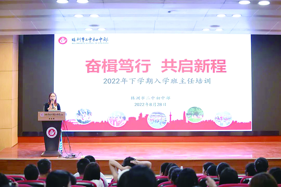 本报讯(株洲晚报融媒体记者/王晖)8月28日,市二中初中部开展2022年下学期入学班主任培训。校长刘建辉,副校长李勇、张群出席培训会。