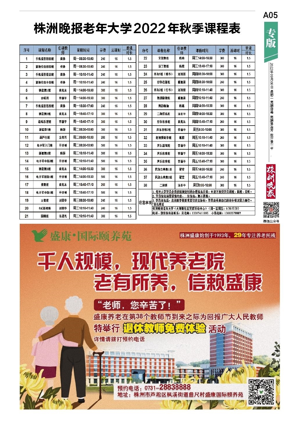 株洲晚报老年大学2022年秋季课程表