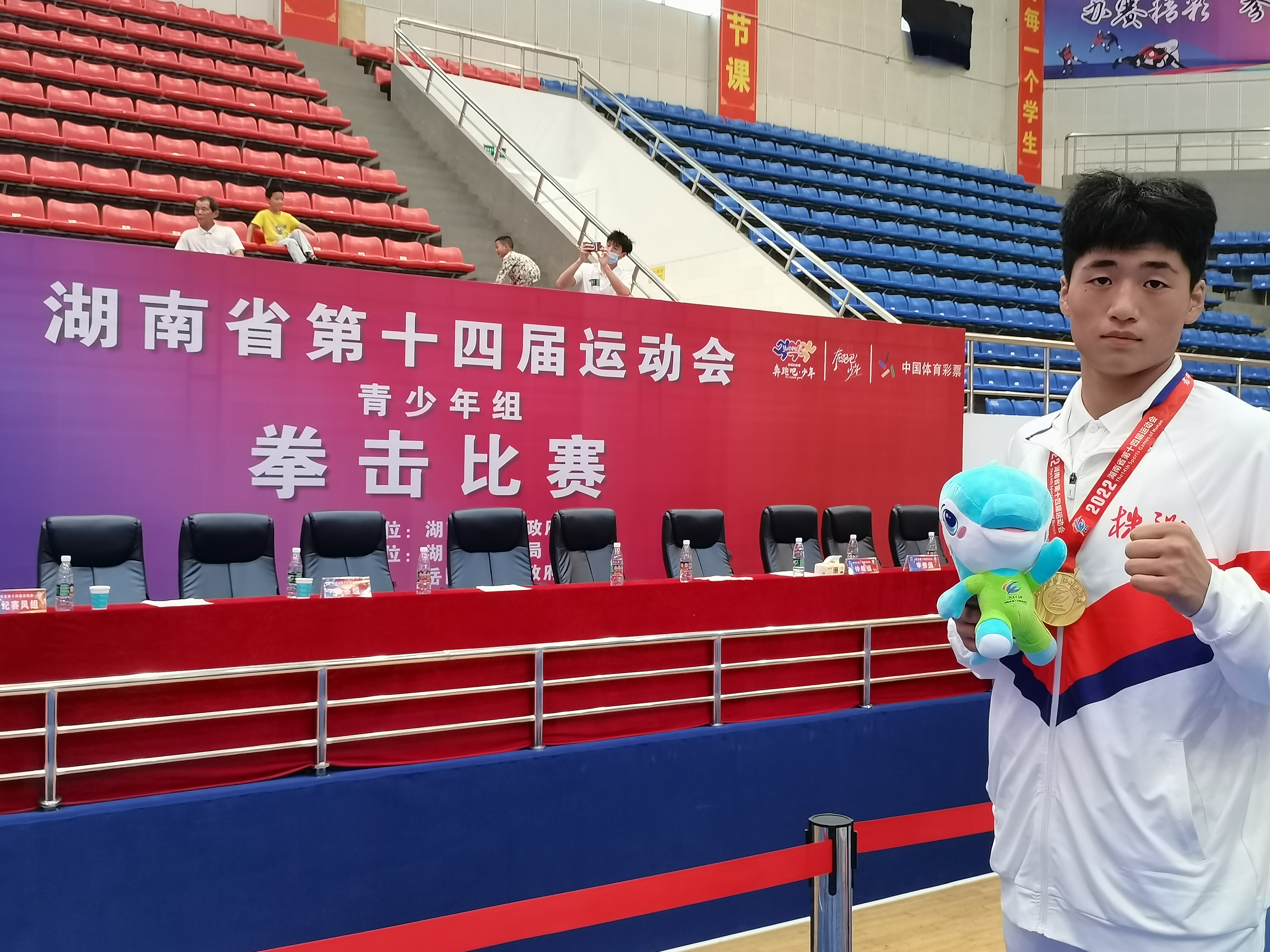 王家乐的天赋很快体现在赛场上。去年,他首次参加省级拳击赛事,一点都不怵,出人意料地拿下了乙组60公斤级冠军。