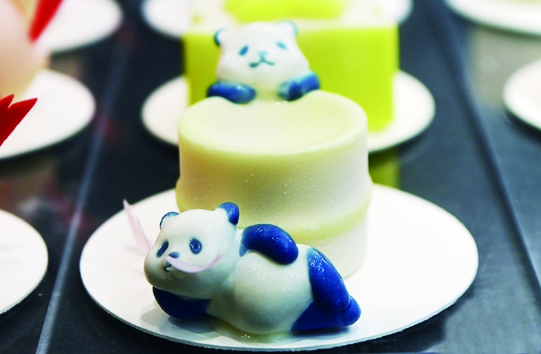 ▲位于成都宽窄巷子的一家蛋糕店根据四川特色文化,推出融合了国宝大熊猫、川剧脸谱和活字印刷术等元素的蛋糕。