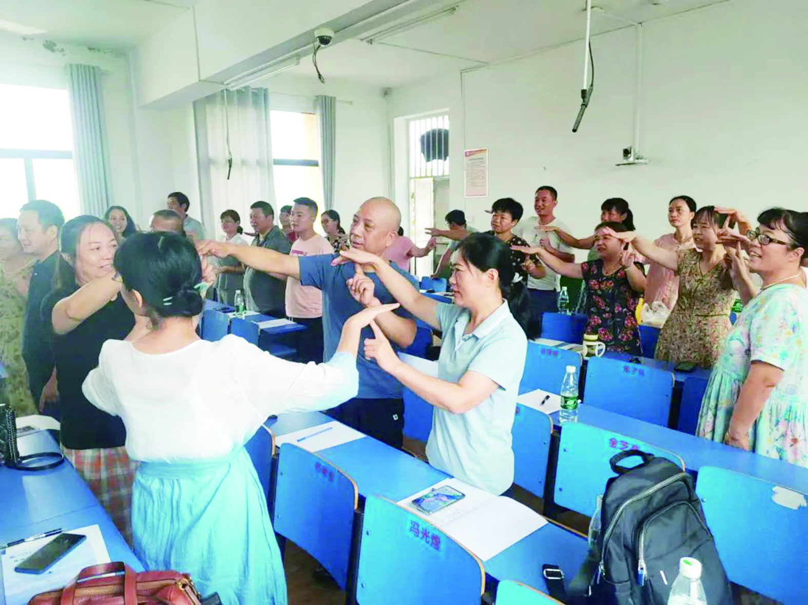 ▲与教师们的互动心理游戏。雷打石学校供图