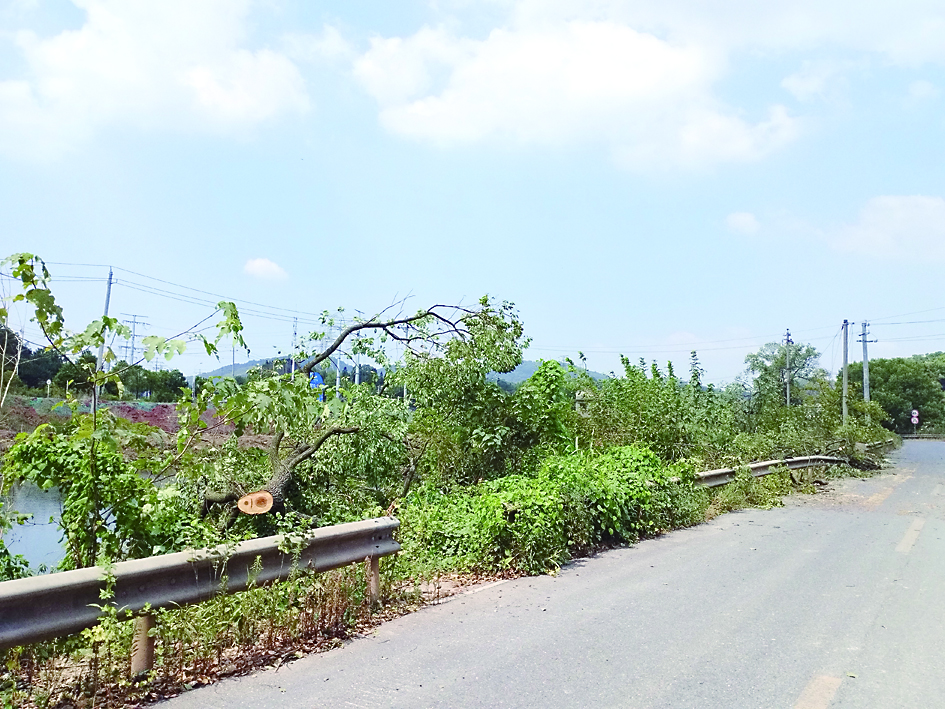 ◀17棵樟树被砍后,被随意丢弃在路边。 受访者供图