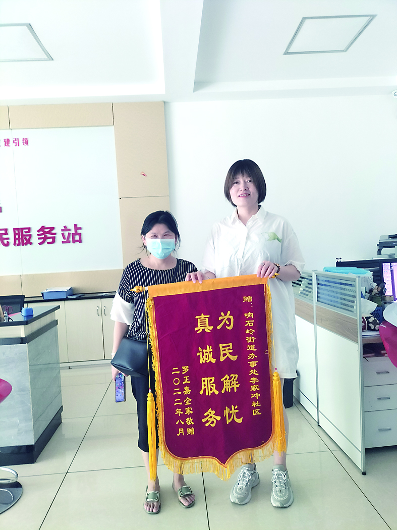 “真诚服务,为民解忧。”近日,家住石峰区响石岭街道李家冲社区的罗女士,特意给社区网格员熊明艳送来了一面锦旗,感谢网格员对其父亲的关心和照顾。