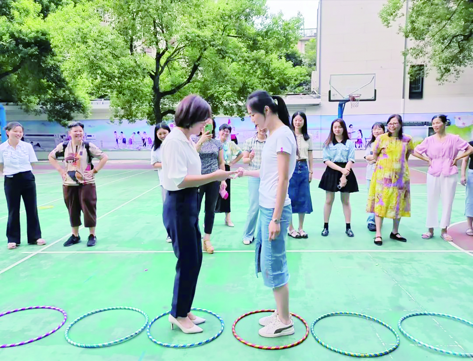 ◀9月8日下午,芦淞区立人学校举行教师节趣味竞技游戏活动。“背后传字”“狭路相逢”等丰富多彩的团体协作比赛项目,让老师们放松心情,享受自己的节日。 株洲晚报融媒体记者/戴凛 通讯员/李茜 摄