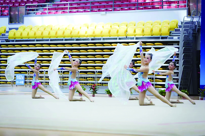 ▲株洲艺术体操队赛场上翩翩起舞。 市少儿体校供图