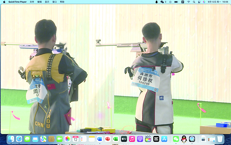 ▲株洲射击运动员何珍权在射击场上奋勇拼搏。 记者/温琳 摄