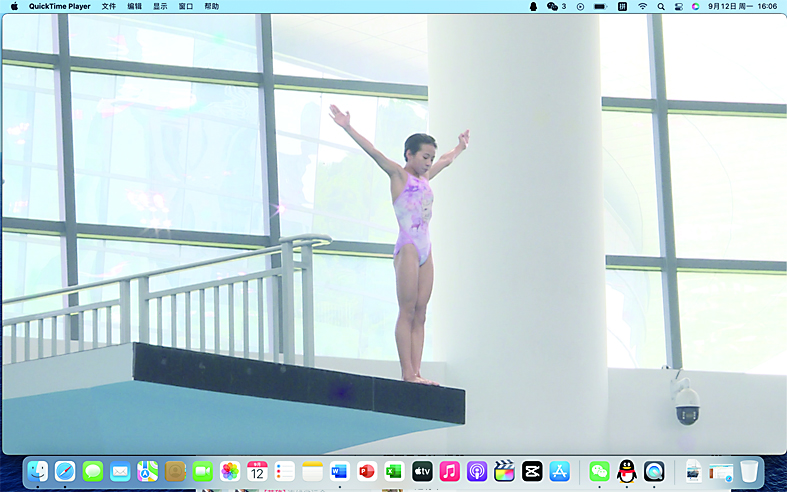 ▲株洲跳水小将在跳台上做准备动作。 记者/温琳 摄