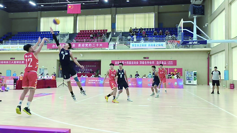 ▲株洲男子三人篮球队创造历史,获得省运会该项目男子首金。 记者/温琳 摄