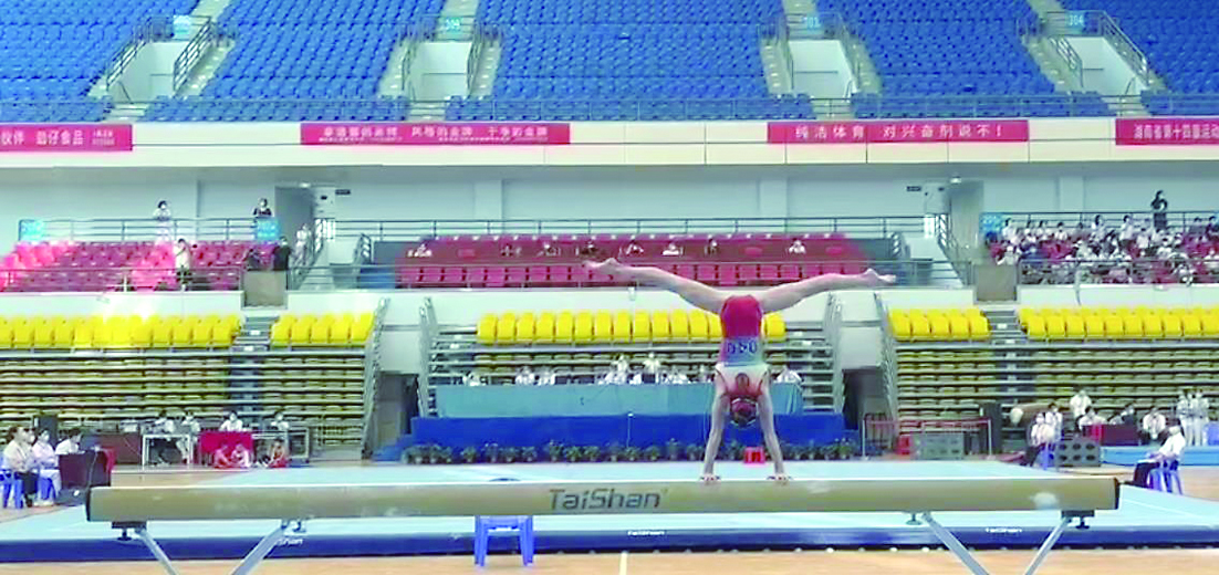 ◀株洲体操运动员在平衡木上表现惊艳。 记者/温琳 摄