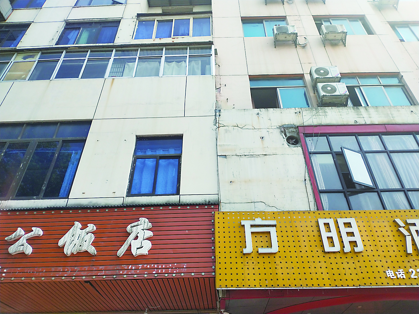 ▲两栋居民楼外墙贴合。记者/廖智勇 摄