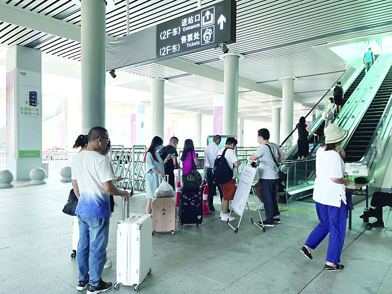 进站口,有车站工作人员值守,指导进站旅客扫场所码、测体温。
