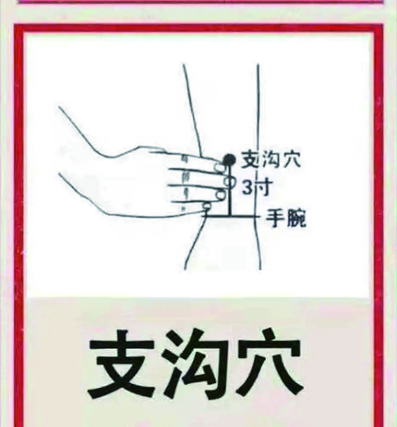 已经出现便秘的人,可以按摩支沟穴来调理。具体做法是:每天清晨排便前,用拇指分别按压双侧支沟穴,由轻到重,感觉指压处有酸麻胀痛感为宜。一般按压10至15分钟后即可感觉肠蠕动加强而产生便意。若1次效果不佳,可继续按摩直到排便。10次为一疗程。支沟穴位于腕背横纹上三寸,尺骨与桡骨间隙中点。