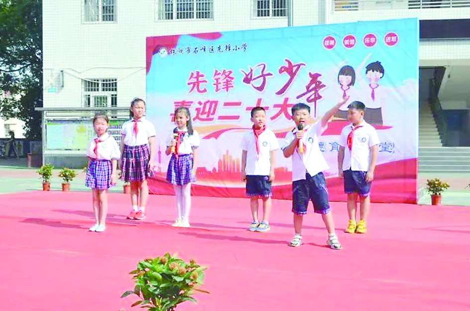 本报讯(株洲晚报融媒体通讯员/林琳)迎接党的二十大胜利召开,激励和引导少先队员们感党恩、听党话、跟党走,厚植爱党爱国、爱家爱校情怀。9月9日,石峰区先锋小学开展“先锋好少年 喜迎二十大”德育大课堂活动。