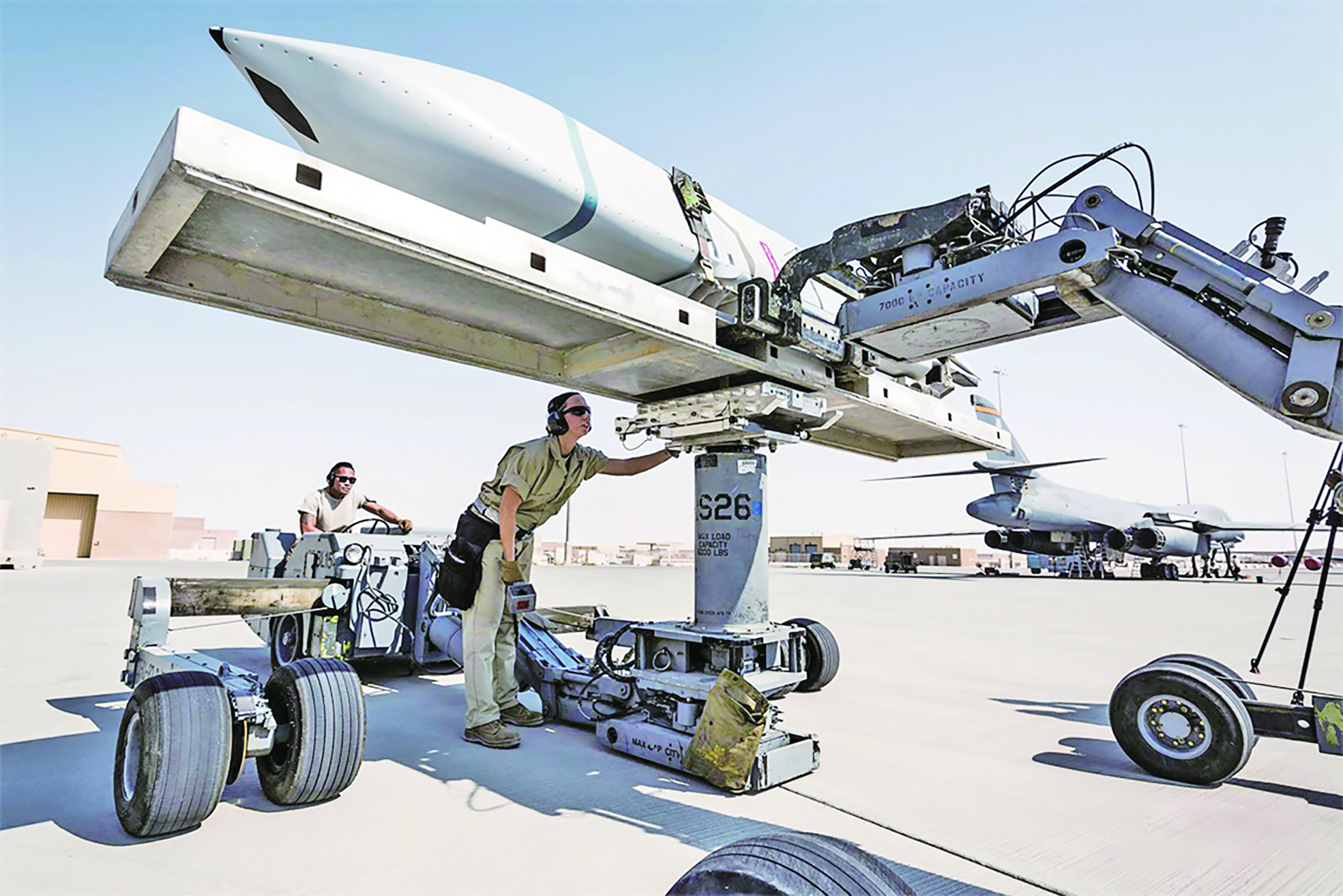 ▲搭载“高功率联合电磁非动能打击武器”的AGM-158B“增程型联合空对地防区外导弹”。