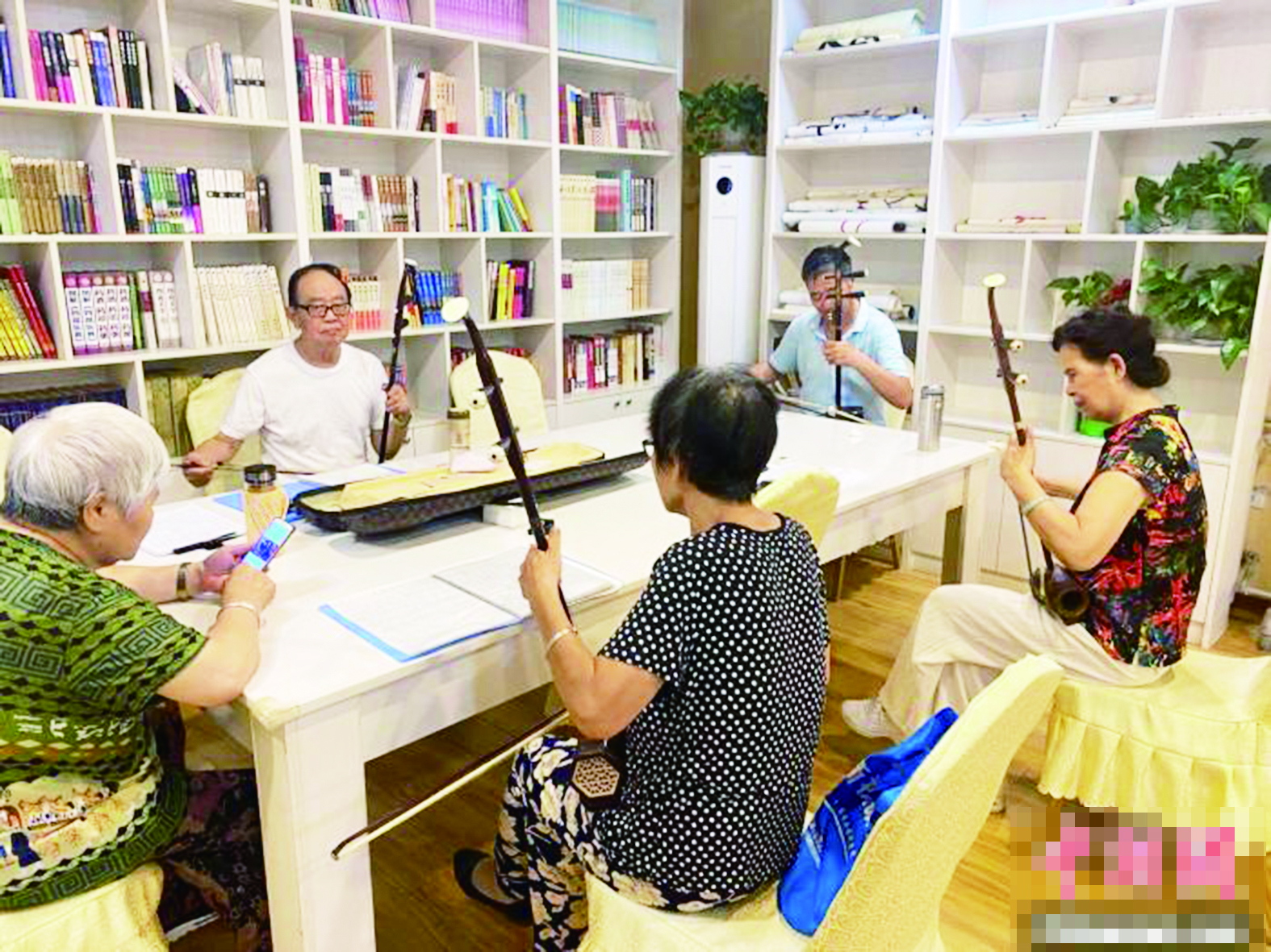 ▲河北保定某社区的日间照料服务站内,老人们一起拉二胡(资料图)。据中新社