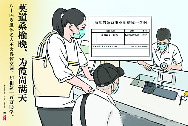 近日,一位84岁的退休老人向宁波市慈善总会捐款100万元,主要用于助学项目。据悉,这位老人姓林,是一名大学退休教师,因曾在校园里看到学生吃咸菜汤,非常心痛,于是萌生了捐款助学的念头。林老的退休金并不高,一日三餐以及生活用具都十分简朴,炎热的夏天他自己舍不得装空调,就这样一点一滴攒出了这笔爱心巨款。