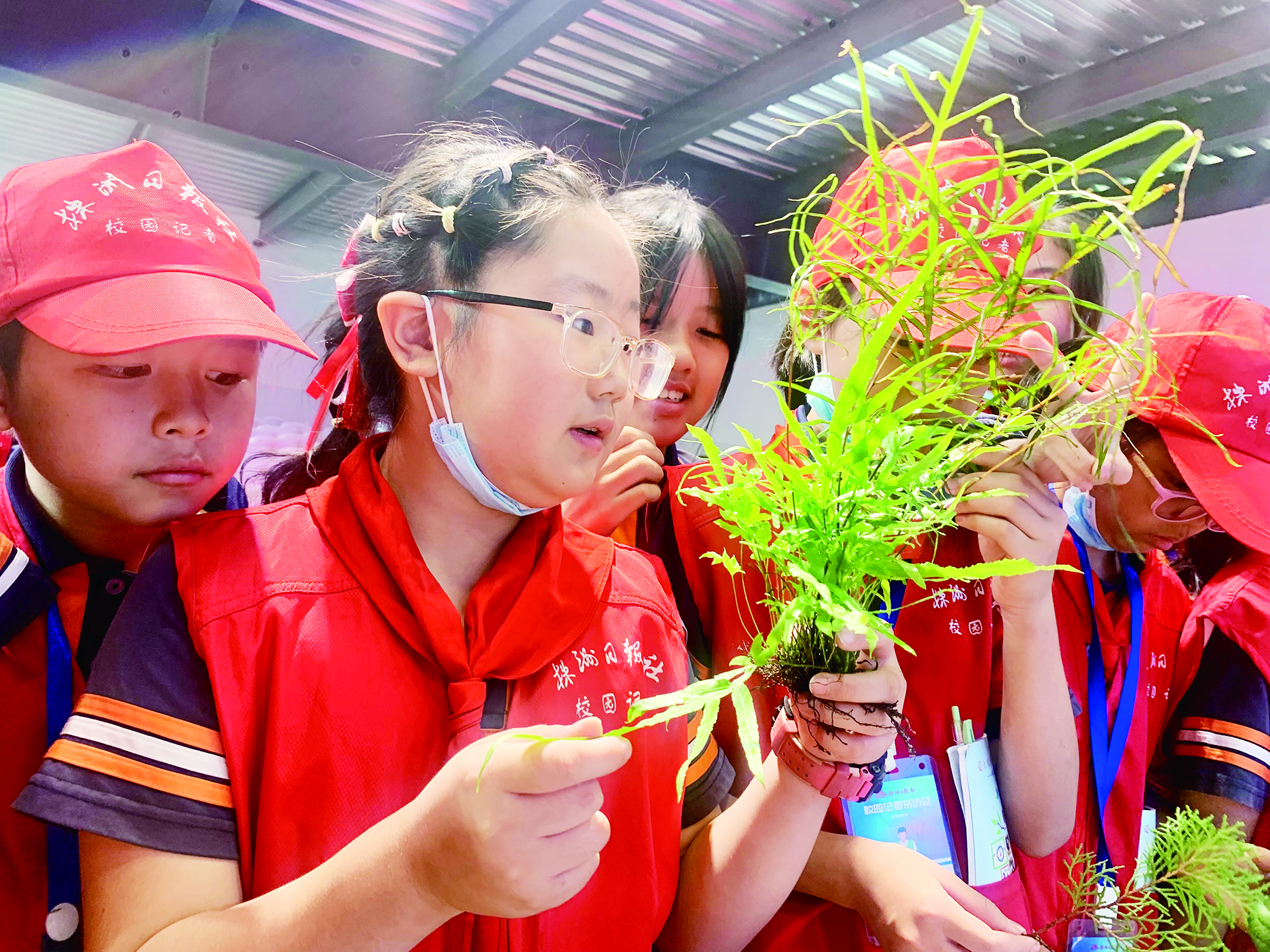 ▲学生们第一次看到新鲜的中草药。记者/颜家萍 摄