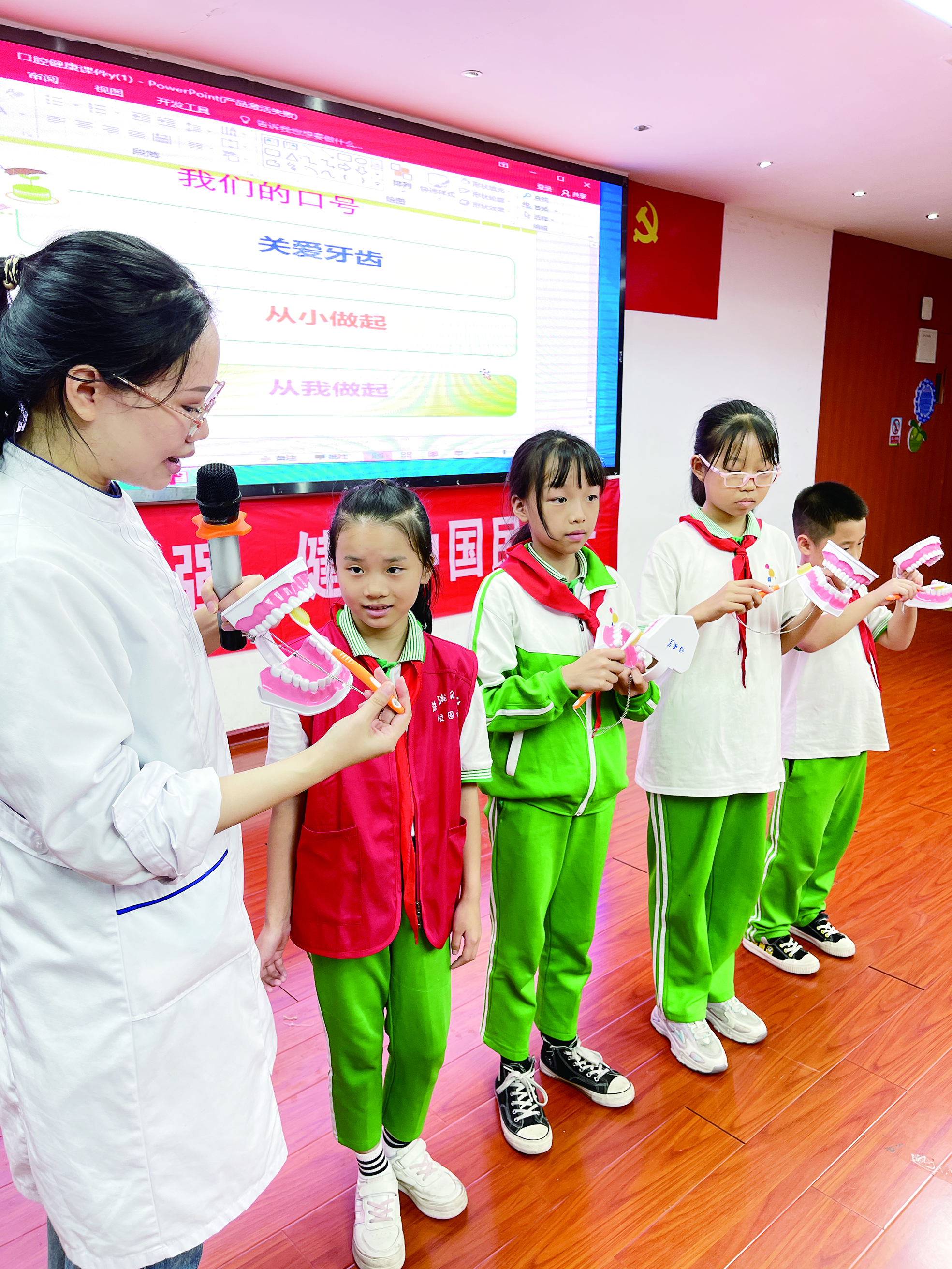 今年9月20日是第34个“全国爱牙日”。做“窝沟封闭”可以少长蛀牙、一定要用含氟的牙膏刷牙……当日,罗莹赛向校园记者讲解系列口腔知识。为了实现“没有蛀牙”的目标,校园记者化作护牙小卫士,认真学习爱牙、护牙的知识。