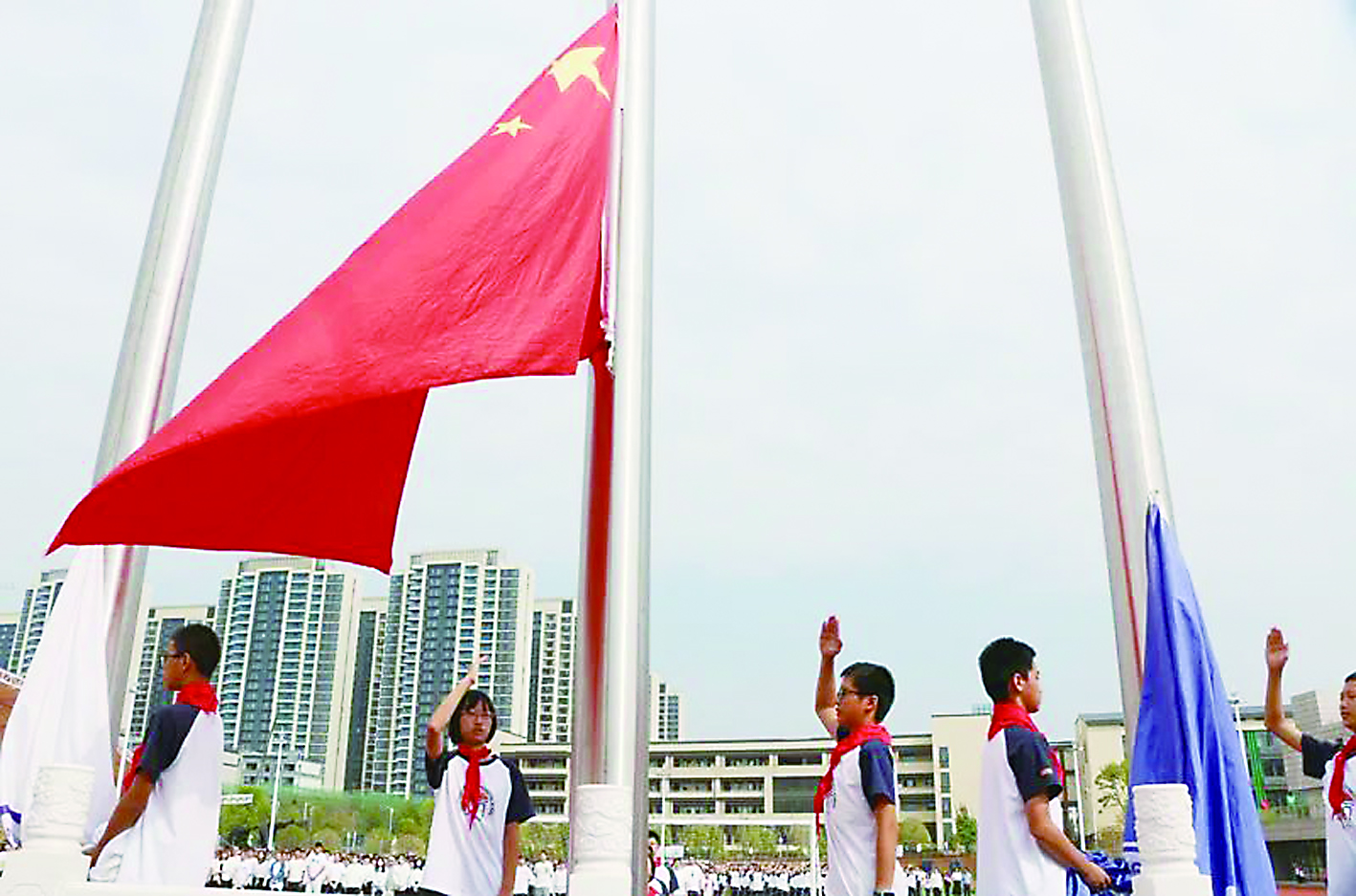 在庄严嘹亮的国歌声中,鲜艳的五星红旗冉冉升起,孩子们向国旗敬礼。现场,孩子们通过音乐、舞蹈、经典诵读等多种文艺形式,表达对祖国深深的热爱与祝福。